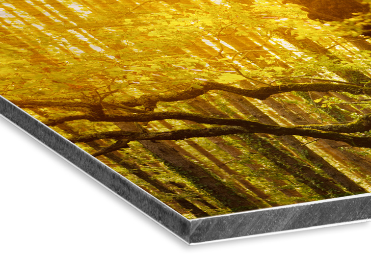 El Aluminio es un material muy rígido y resistente y al ser especialmente liso, conseguimos un artículo con una nitidez excepcional, el que usamos nosotros consiste en un sándwich compuesto de dos planchas de Aluminio y un PVC prensado en el centro se llama Aluminio Dibond, siendo muy conocido en el mundo de la fotografía, es bastante rígido y no se deforma, un artículo de excelente calidad, además de actual.