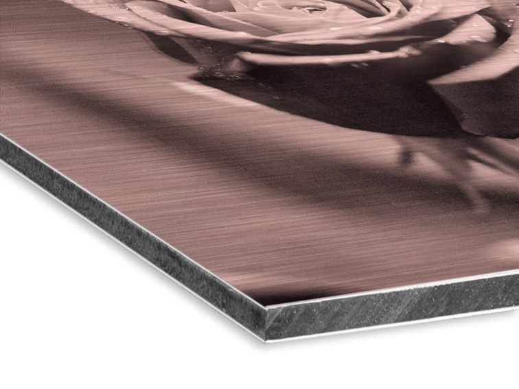 PEANA ALUMINIO CEPILLADO ROSA UV 3MM tus fotos Impresas en Aluminio Cepillado Rosa, es un producto de alta calidad, no se parte de una base blanca si no de un tono metálico rosa, creando un artículo profesional que se aleja de la fotografía tradicional y va más allá para crear un artículo nuevo, con un efecto metálico rosa como si se tratara de un grabado de serigrafía y digno del mejor artista.